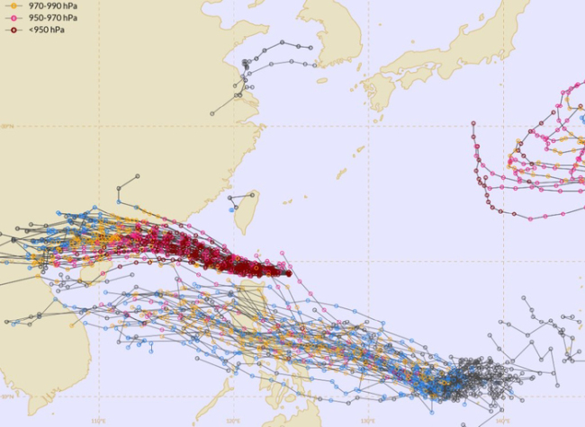 然而,经过巴士海峡、台湾省和菲律宾等地时,地理环境会对环流进行消减,但中心区域难以彻底削弱。进入南海后,我国预警仍为16级超强台风级别,随后风速再次提升至60米/秒,达到17级超强台风。