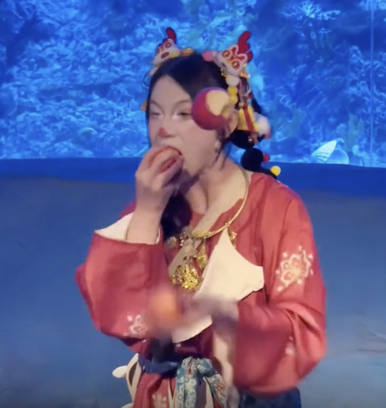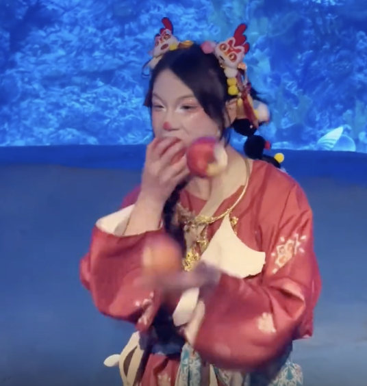 00后女生海洋馆抛苹果边抛边啃!