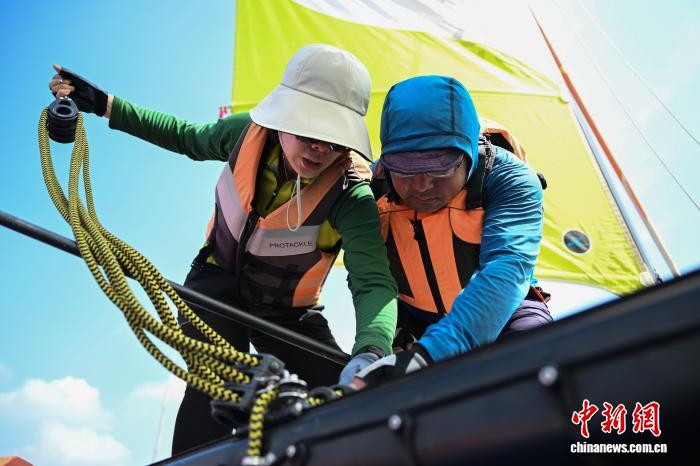 9月27日,选手作赛前准备。当日,2025中国家庭帆船赛·杭州站在浙江杭州临安青山湖拉开帷幕,来自北京、上海、武汉等10个城市的40组家庭近百名选手在绿水青山间扬帆。中新社记者 王刚 摄