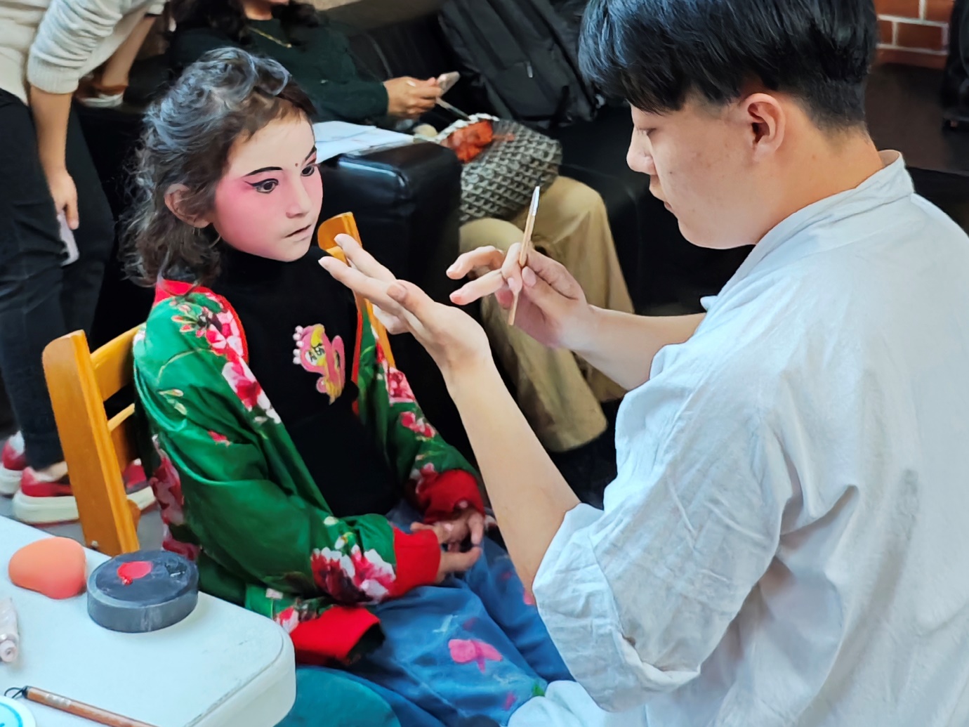 9月26日下午,中国戏曲学院同70余名中瑞戏曲文化爱好者进行了戏曲文化交流,举办了“粉墨逸彩”——中国戏曲舞台美术展,并为中瑞两国的小朋友们开展了画脸谱等现场体验活动。