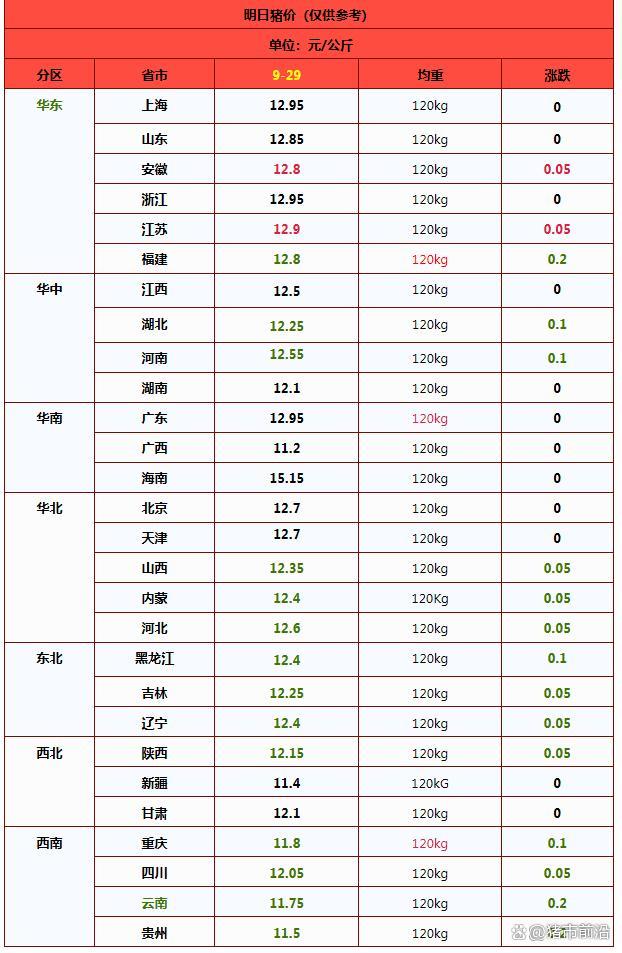 一夜降温,猪价下跌“跌不停”!附:9月29日猪价 供应过剩压制反弹!9月渐入下旬,国内生猪市场猪价走势以震荡偏弱为主。尽管中秋、国庆双节临近,下游需求有所支撑,尤其是市场存在备货需求,屠宰场对猪源需求增加,但多元主体出栏积极,供应压力集中释放,导致猪价缺乏有效反弹的支撑,短期内生猪市场维持震荡偏弱的基本面。