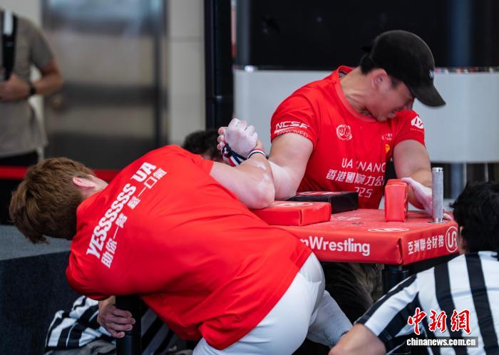 香港举办腕力公开赛 壮汉比拼手腕力量