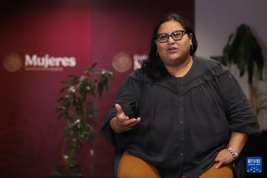 10月3日,在墨西哥首都墨西哥城,墨西哥妇女部长西特拉莉·埃尔南德斯·莫拉接受新华社记者专访。新华社发(丹尼尔·奥古斯托摄)