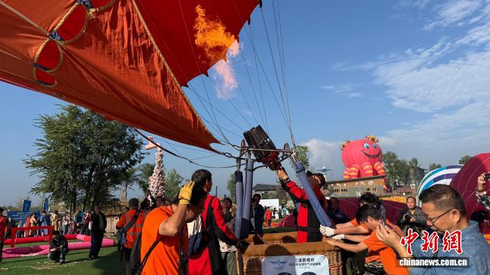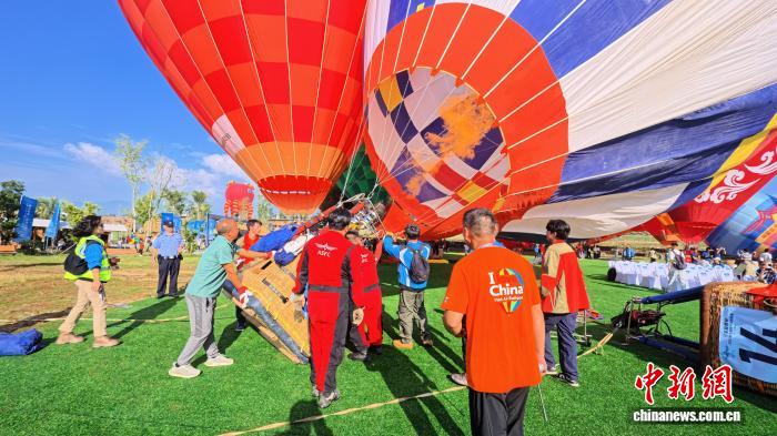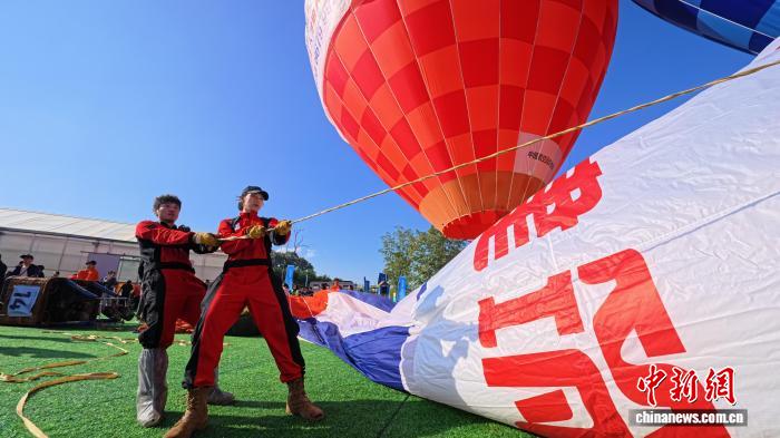 图为参赛选手为“放飞”热气球做前期准备。杨予頔 摄