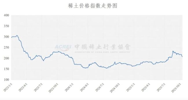 供需改善,稀土价格在今年迎来显著回升。中国稀土行业协会的数据显示,年初以来,稀土价格指数震荡上行,并在8月达到阶段高点,随后有所回落。其中,轻、重稀土价格均显著上涨,涨幅则因品种而异。