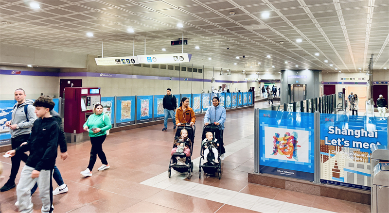 本次展览突破传统展馆的围墙限制,策展团队巧妙利用站内通道与公共大厅,将空间转化为沉浸式“上海文化客厅”——往来行人无需特意奔赴,只需放慢脚步,便能在通勤途中与东方美学不期而遇。这种“嵌入式”的展示方式,让城市形象传播从“远距离观摩”变为“近距离感知”,让每一位过客都成为上海故事的见证者。