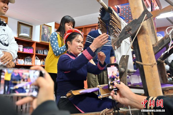 图为李素英演示壮锦制作技艺。俞靖 摄