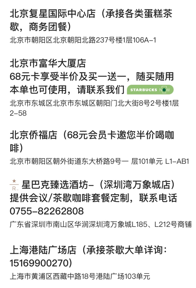 星巴克中国应用里的一些门店名字