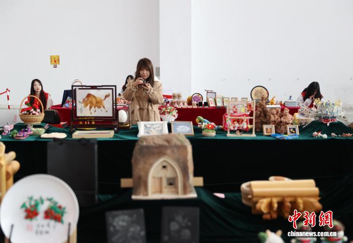 图为残疾人线上销售手工制品。中新社记者 于晶 摄