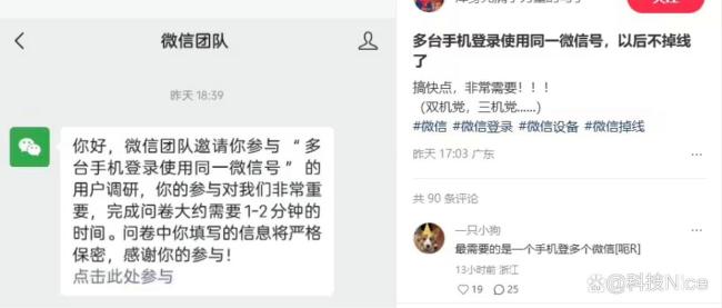 微信被曝探索多台手机登录同一账号 功能内测引关注!今日有媒体报道称,部分微信用户收到来自官方的调研邀请,内容显示微信正在探索“多台手机登录同一账号”功能,允许用户通过授权在多部移动设备上同时在线使用微信。这一消息迅速引发行业关注,被视为微信在多设备协同场景下的重大突破,但同时也引发了对用户隐私与账号安全的广泛讨论。