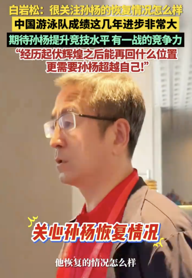 白岩松期待孙杨超越自己11月12日,广东深圳。中国蓝新闻记者采访白岩松,他表示很关注浙江运动员孙杨。孙杨的恢复情况怎么样,这一切都是以训练为基础。中国游泳队成绩这几年进步非常大,期待孙杨提升竞技水平,能有一战的竞争力!“很期待经历起伏辉煌之后,孙杨能再回什么位置,当然更需要孙杨超越自己!”