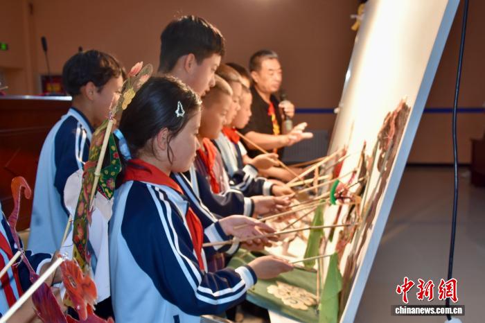 学生沉浸式体验皮影戏技艺。(资料图)泾源县委宣传部供图