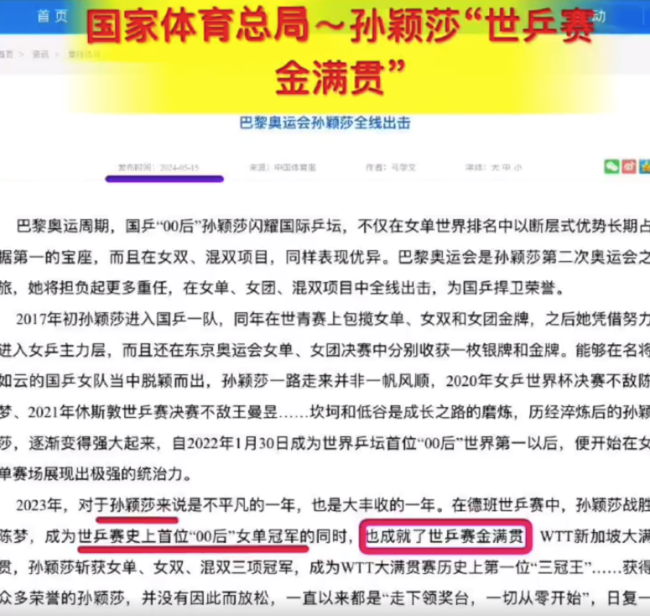 孙颖莎是世乒赛首位女子双圈金满贯