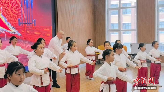 京剧演员史秉权正在给小学生们上课。石洪宇 摄