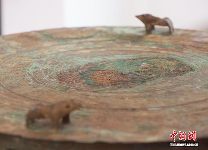 图为鼓边铸着的青蛙。汤晓逵 摄
