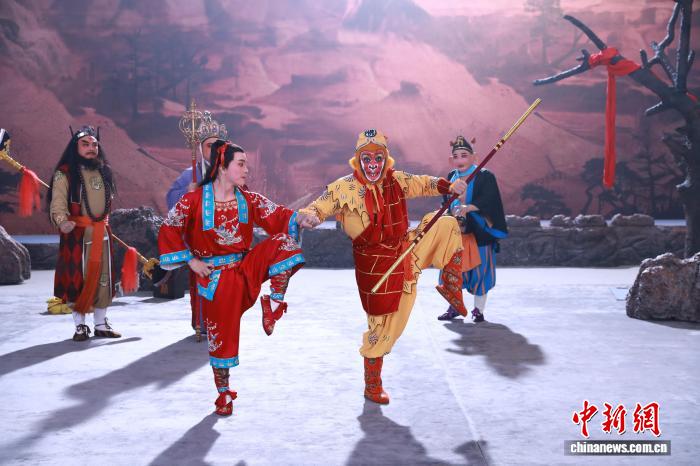绍剧戏剧电影《孙悟空大战红孩儿》拍摄现场。(资料图,绍兴市非遗保护协会供图)