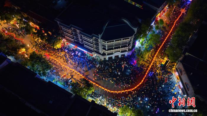图为板凳龙穿梭于城厢古城。成都市青白江区融媒体中心 供图