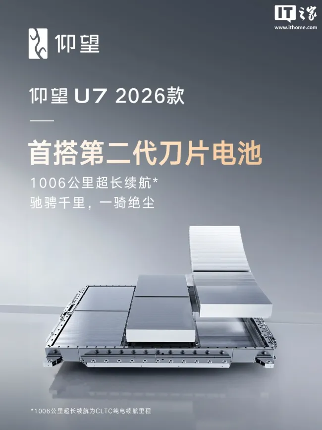 新款仰望U7首搭第二代刀片电池 1006公里超长续航突破不可能三角