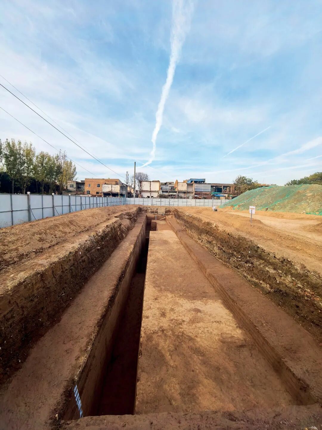 2025年阿房宫台基遗址发掘现场,探沟逐层放坡,减少对台基的破坏。本文图/受访者提供