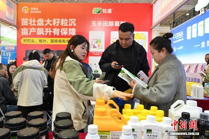3月26日,内蒙古呼和浩特市,展商介绍玉米种子。中新社记者 刘文华摄