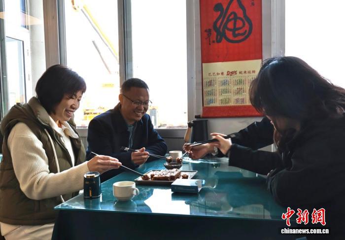 图为食客在分享肉焖子。杨馥宁 摄
