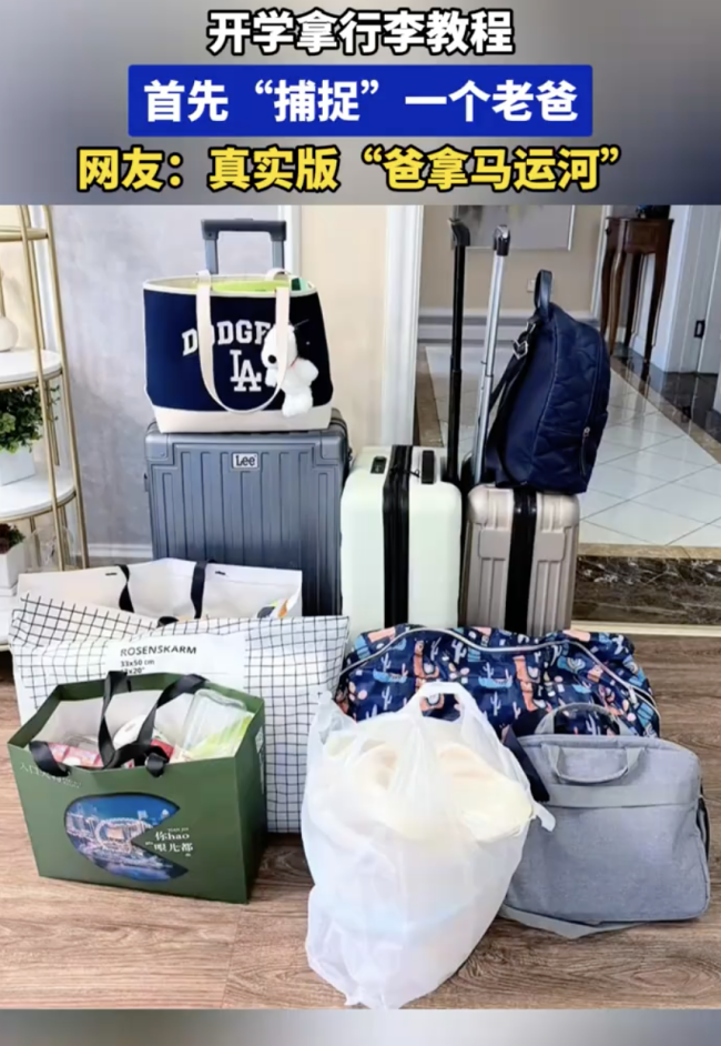 开学季著名景点:“爸拿马运河”。9月开学季,有网友分享自己的开学拿行李教程,首先“捕捉”一个老爸,网友调侃称:“爸拿马运河”。开学季著名景点:“爸拿马运河”开学季著名景点:“爸拿马运河”开学季著名景点:“爸拿马运河”开学季著名景点:“爸拿...