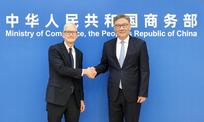 王文涛部长会见苹果公司首席执行官库克 (图源:商务部网站) 10月16日,商务部部长王文涛会见美国苹果公司首席执行官库克。双方就中美经贸关系、苹果公司在华业务发展等进行了交流。