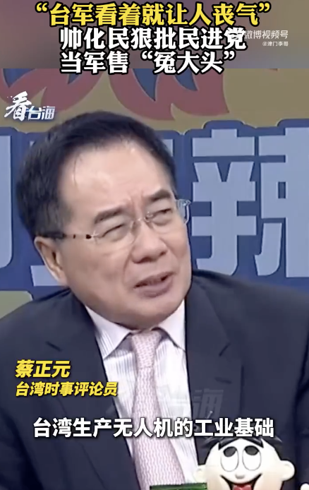 台退将批民进党当局当军售冤大头。“台军看着就让人丧气”帅化民狠批民进党当军售“冤大头”!台退将批民进党当局当军售冤大头...