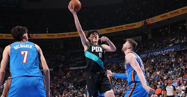 北京时间11月24日,波特兰开拓者在客场以95-122不敌卫冕冠军俄克拉荷马雷霆。杨瀚森此役出战17分钟,创下NBA生涯新高,全场贡献8分4篮板3助攻1抢断1盖帽