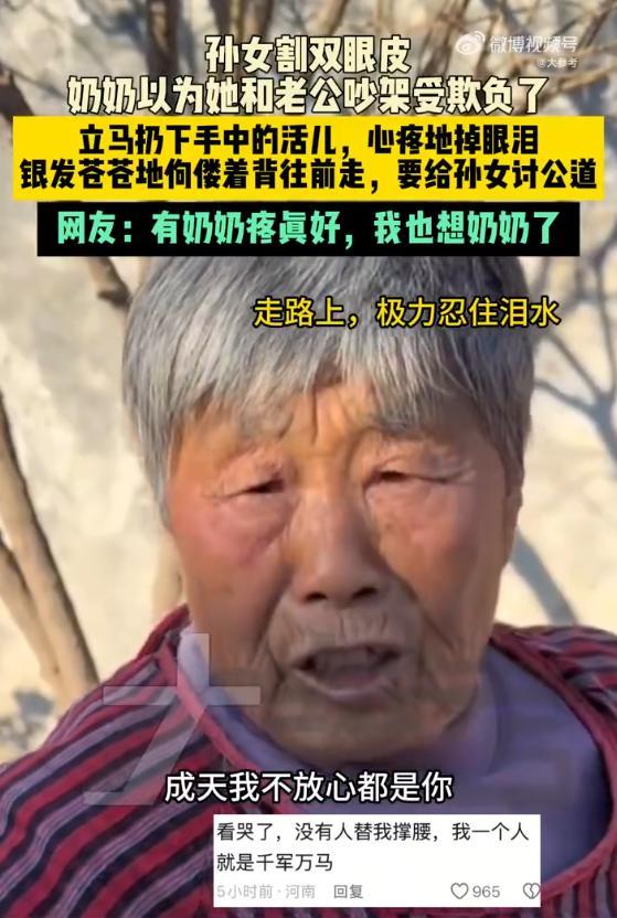女子割双眼皮 奶奶以为被打心疼落泪 奶奶的爱让人泪目