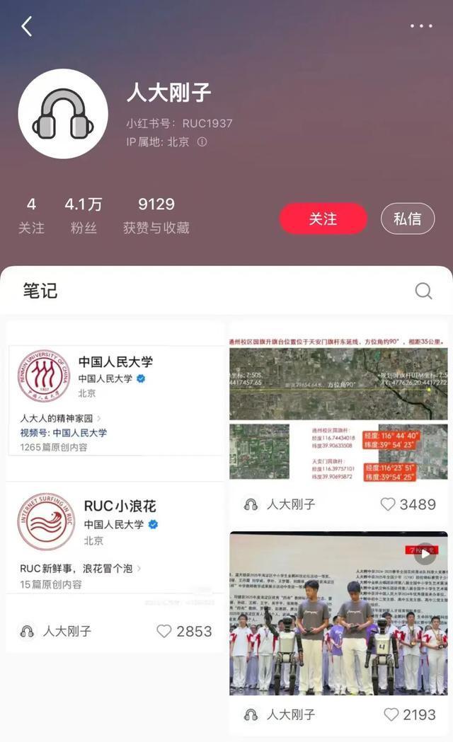 9月7日上午,认证为中国人民大学官方账号的“RUC小浪花”发文确认,“人大刚子”是该校党委书记张东刚的个人小红书账号。该账号在9月6日开始连续发布了两条与人大相关的帖文,截至9月8日上午10时,粉丝量已达4万