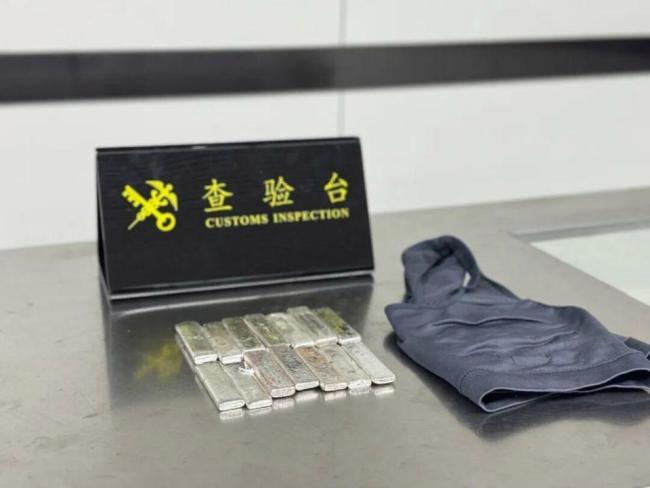 海关查获旅客藏匿足银14块 巧妙藏匿企图过关