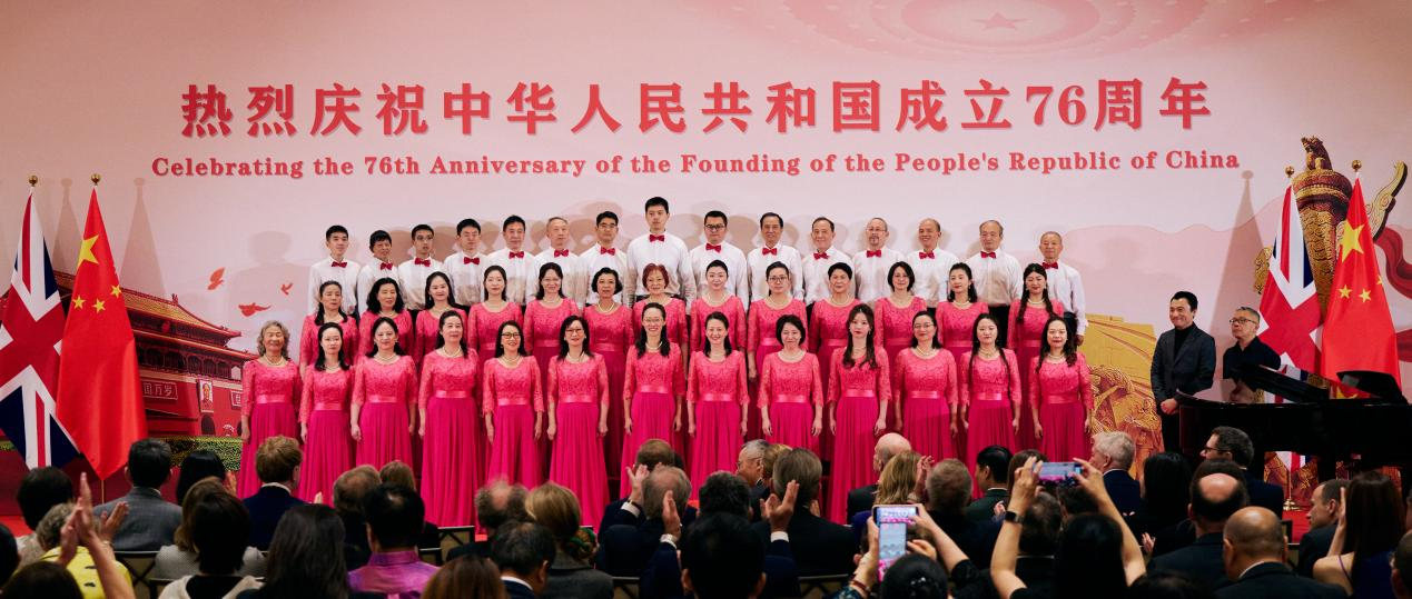 人民网伦敦9月20日电(徐量)中国驻英国大使馆19日在伦敦举办庆祝中华人民共和国成立76周年招待会。英国政府官员以及来自中英各界人士共400余人出席活动。招待会上,节目丰富多彩,伦敦又来春乐团、梅纽因
