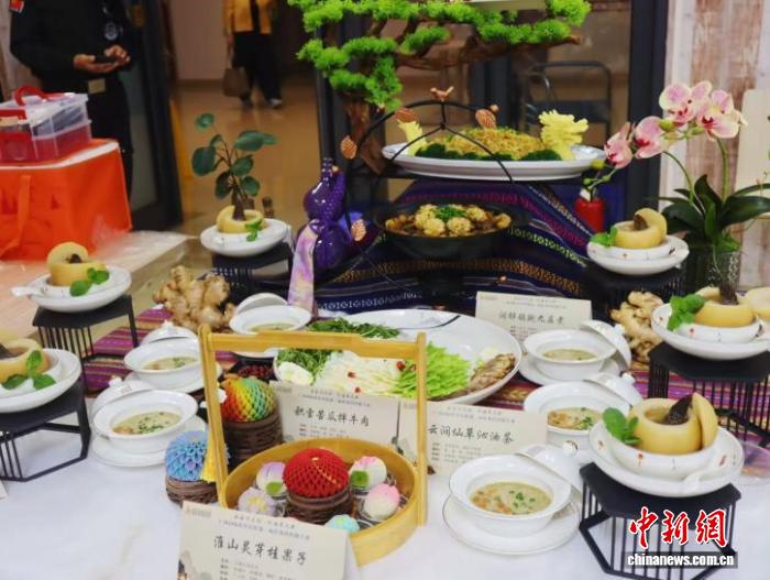 图为比赛作品展示。陈燕淼 摄 中新网南宁11月3日电(陈燕淼)润肺鸽鲍九层煮、三元壮骨排、桂香绣球……11月2日,广西国际壮医医院第三届壮瑶药药膳大赛于广西南宁正式开赛。