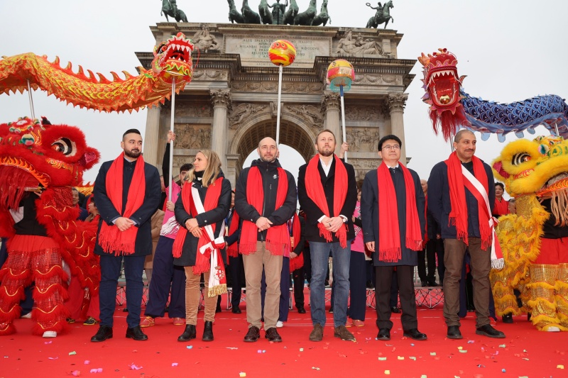人民网罗马3月2日电(记者谢亚宏)当地时间3月1日,意大利米兰地标建筑和平门广场锣鼓喧天,彩旗飘扬,由米兰侨界联合主办的“喜迎新春·舞龙舞狮”大联欢活动在此盛大举行。约5万名中意各界友好人士、旅意侨胞