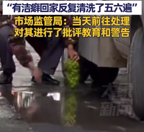顾客称水果贩用马路污水洗阳光玫瑰 官方回应