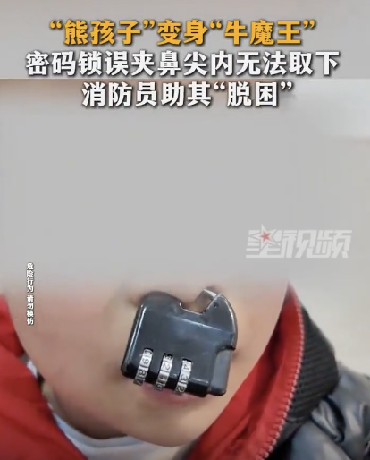 小孩用密码“锁”鼻 消防员:还玩吗?