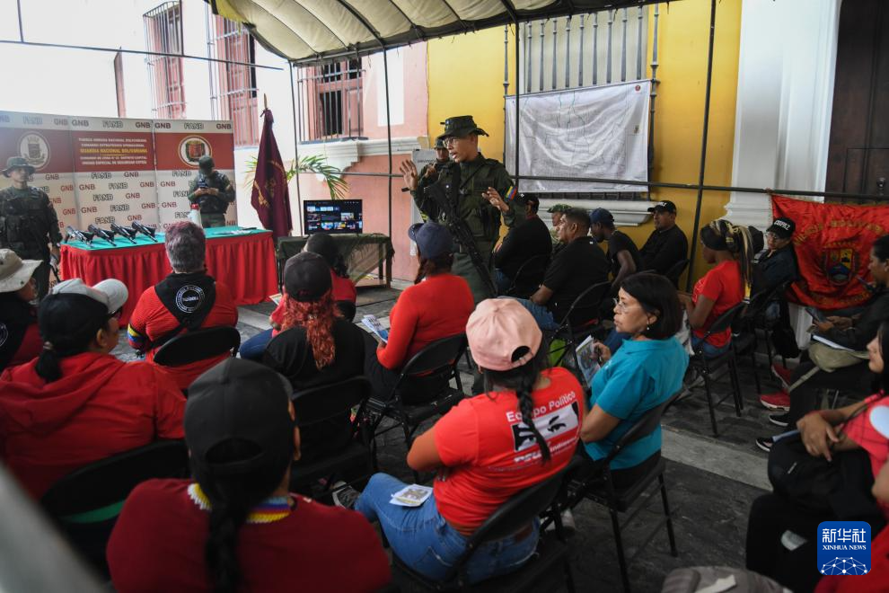 9月20日,在委内瑞拉首都加拉加斯,武装部队人员向民兵和社区居民讲授作战知识。新华社发(马科斯·萨尔加多摄)新华社加拉加斯9月20日电(记者廖思维孟宜霏)委内瑞拉20日启动“军营走向人民”计划,将武装