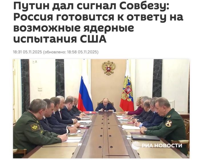 中新网11月6日电 据俄罗斯卫星通讯社报道,当地时间5日,俄罗斯总统普京表示,若美国或其他《全面禁止核试验条约》缔约国进行核试验,俄方必将采取对等反制措施。